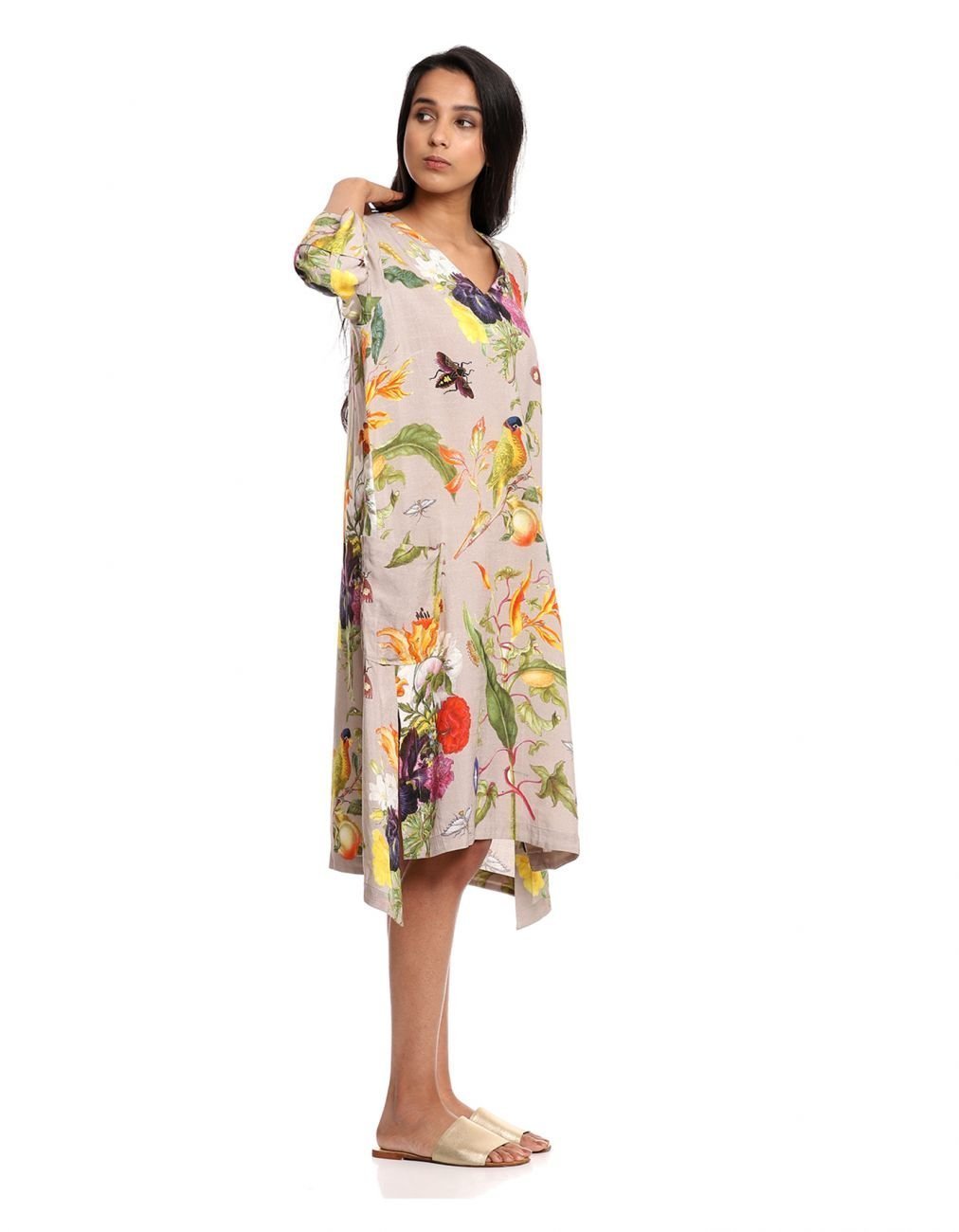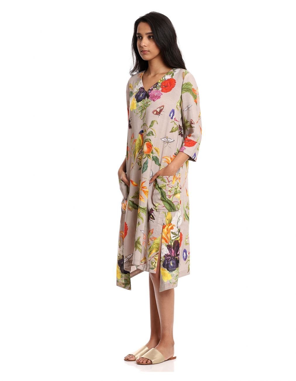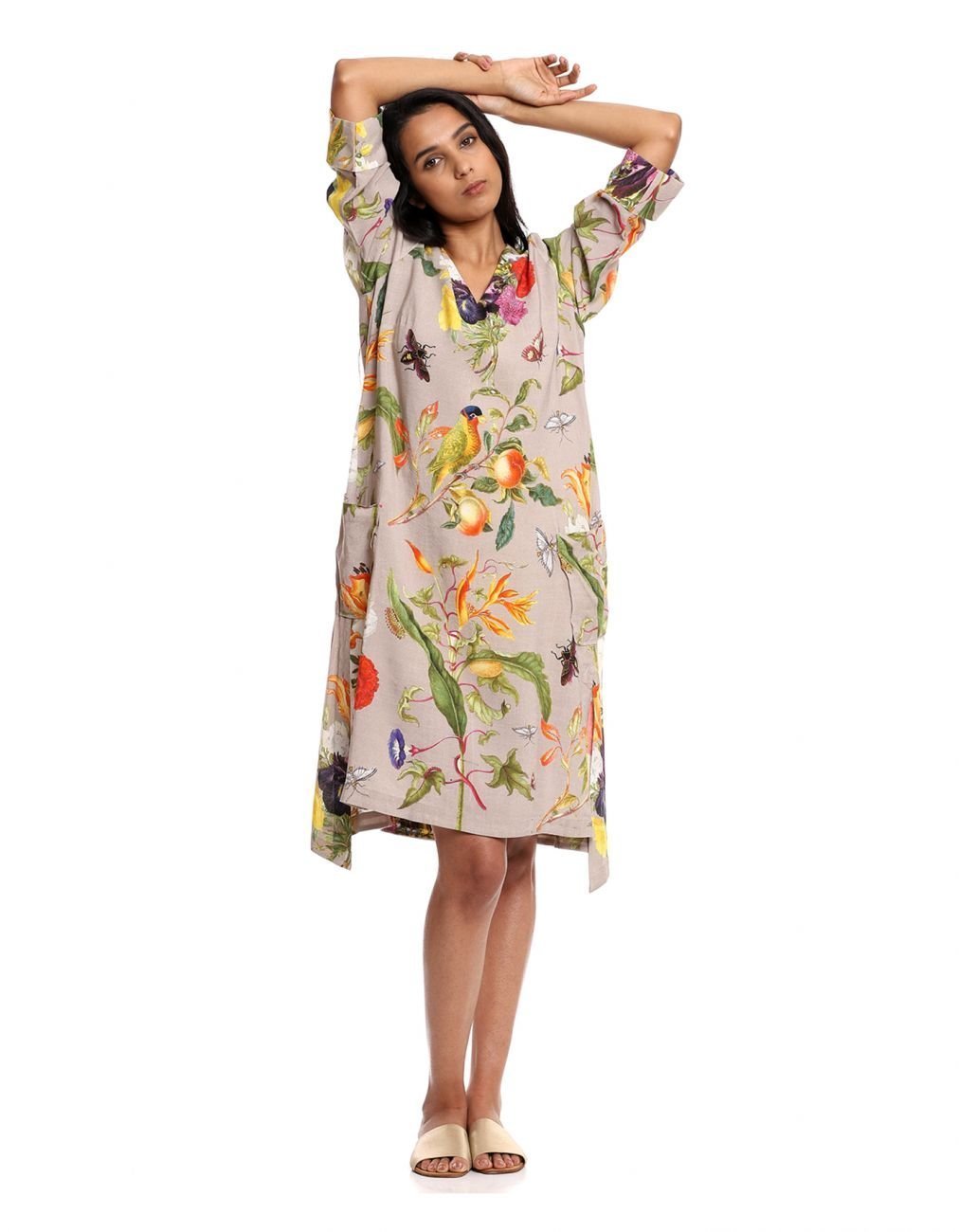 • Beige tropical print dress