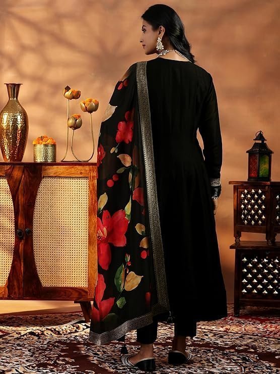 Libas Black Silk Blend Yoke Design Kurta Sets for Women
