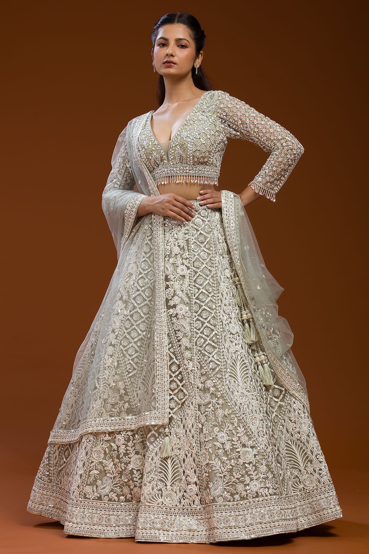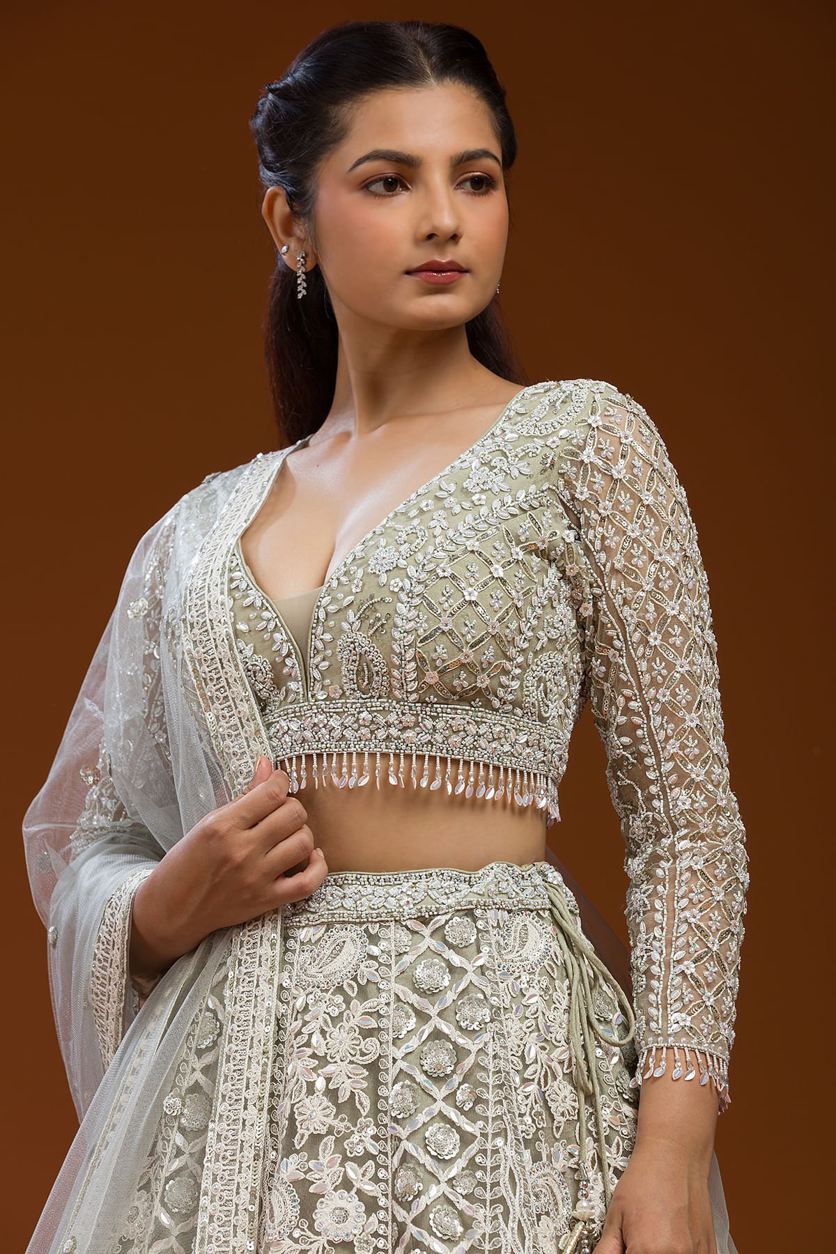 | Lehenga Work : | Sequins, Bead, Pearl & Cutdana |