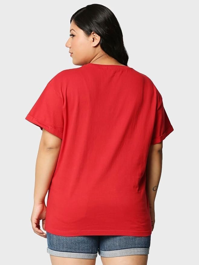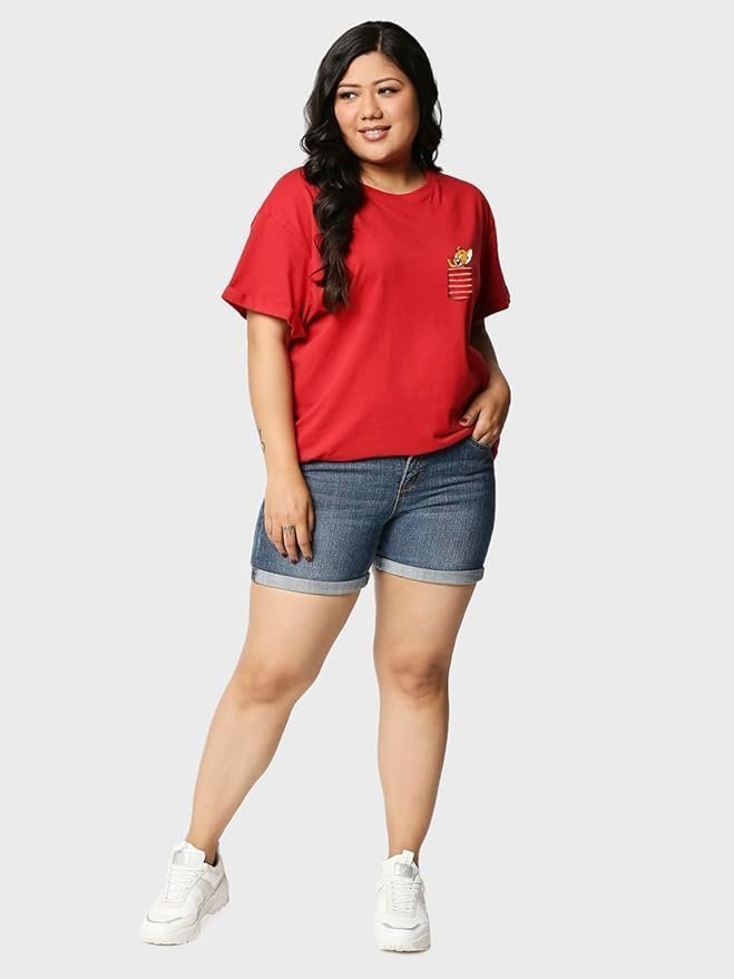Official Tom & Jerry Merchandise Women’s 100% Cotton Graphic Print Boyfriend Fit Round Neck Plus Size T-Shirt