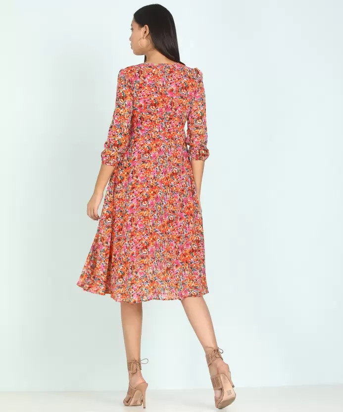 Slip into this trendy and attractive dress from Harpa and look stylish effortlessly. Made to accentuate any body type, it will give you that extra oomph and make you stand out wherever you are. Keep the accessories minimal for that added elegant look, just your favourite heels and dangling earrings, and of course, donât forget your pretty smile! Brand Color:Multi Brand Fabric:Georgette